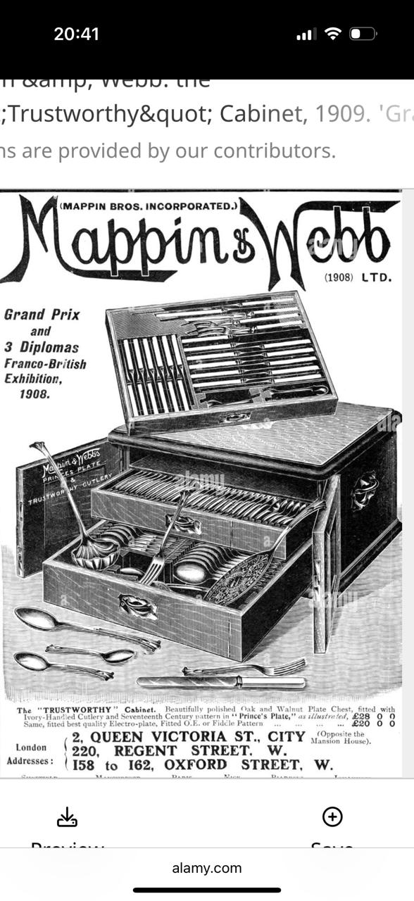 Beautiful Mappin & Webb cutlery cabinet from 1906. Wood has been professionally restored, but the cutlery included is 80% complete